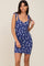 A floral dress with a v-neckline, adjustable shoulder straps, and ruched details along the center front, center back, and the sides.