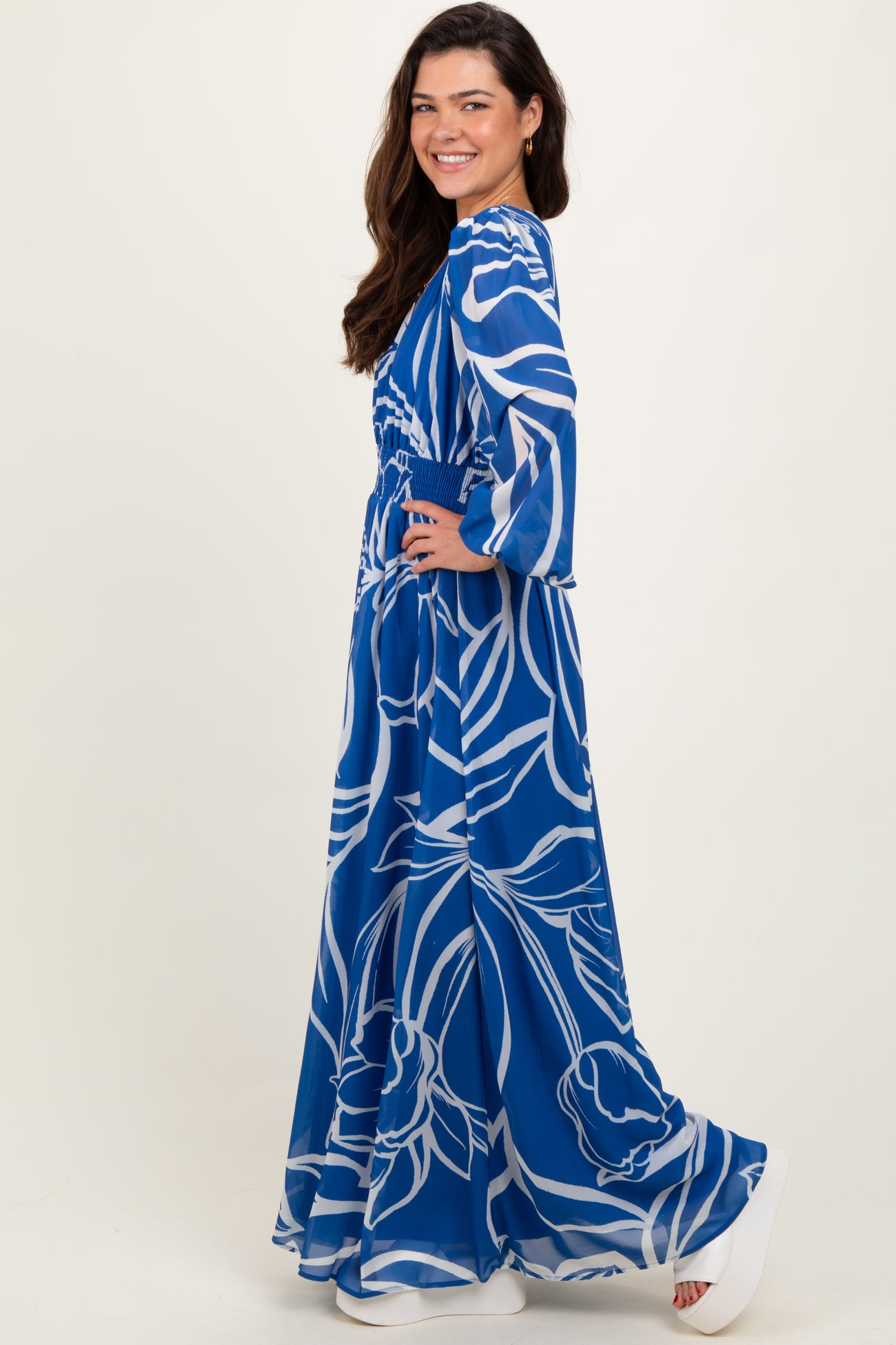 Navy Floral Smocked Waist Long Sleeve Maxi Dress