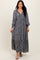 Navy Floral V-Neck Bubble Sleeve Maxi Dress