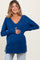 Navy Front Seam V-Neck Side Slit Maternity Sweater