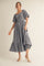 Navy Gingham Smocked Puff Sleeve Midi Dress