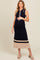 Navy Knit Button Front Contrast Border Maternity Midi Dress