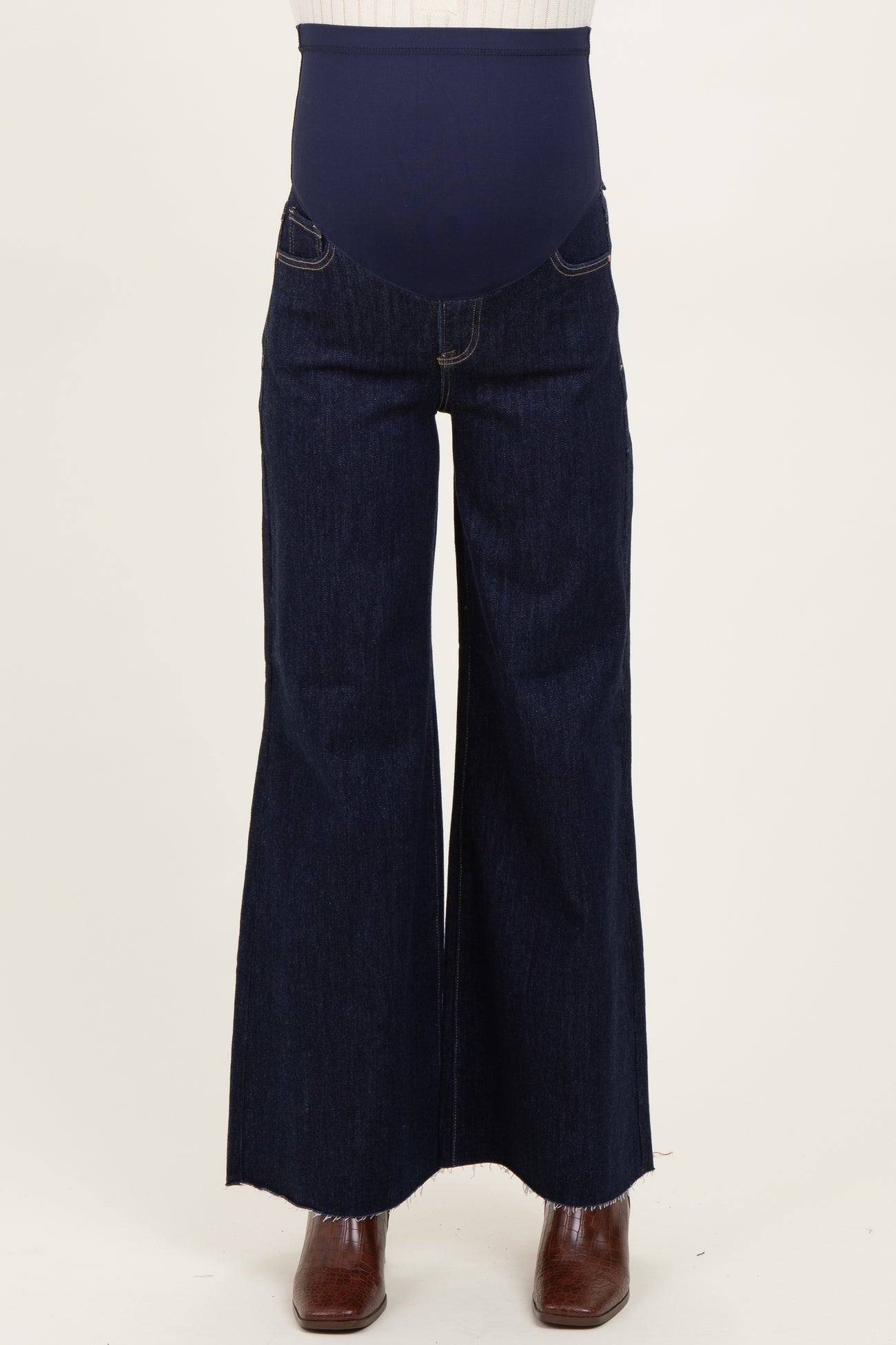 Navy Metallic Finish Palazzo Wide Leg Maternity Jeans