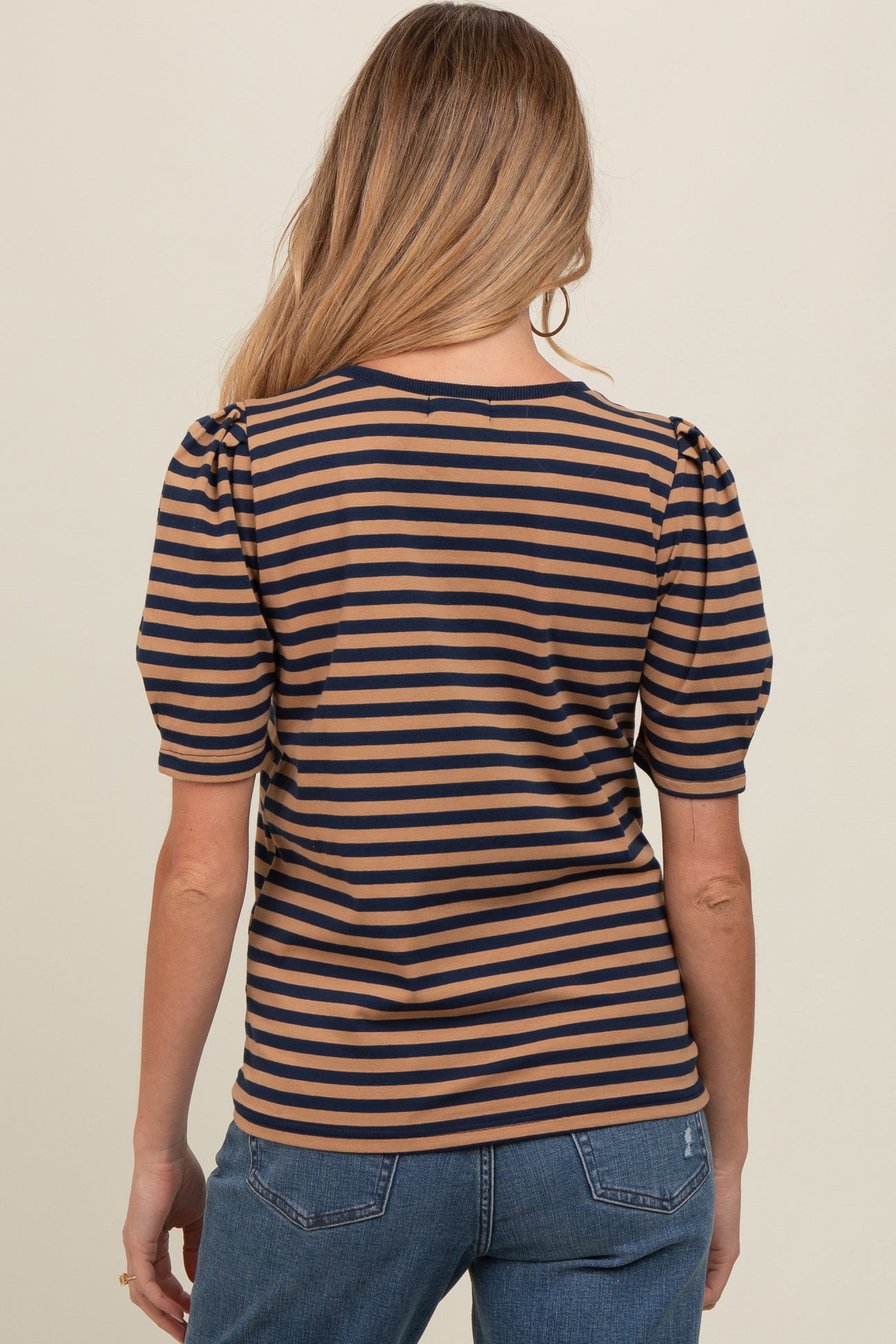 Navy Multi Striped Puff Sleeve Knit Maternity Top