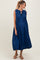 Navy Pleated Double Front Tie Sleeveless Maternity Midi Dress