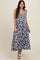 Navy Printed Smocked Shoulder Tie Midi Dress