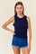 Navy Rib Knit Ruffle Trim Sleeveless Top