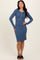 Navy Ribbed Long Sleeve Half Button Up Fitted Dress