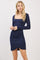 Navy Ribbed Long Sleeve Ruched Tulip Skirt Dress