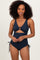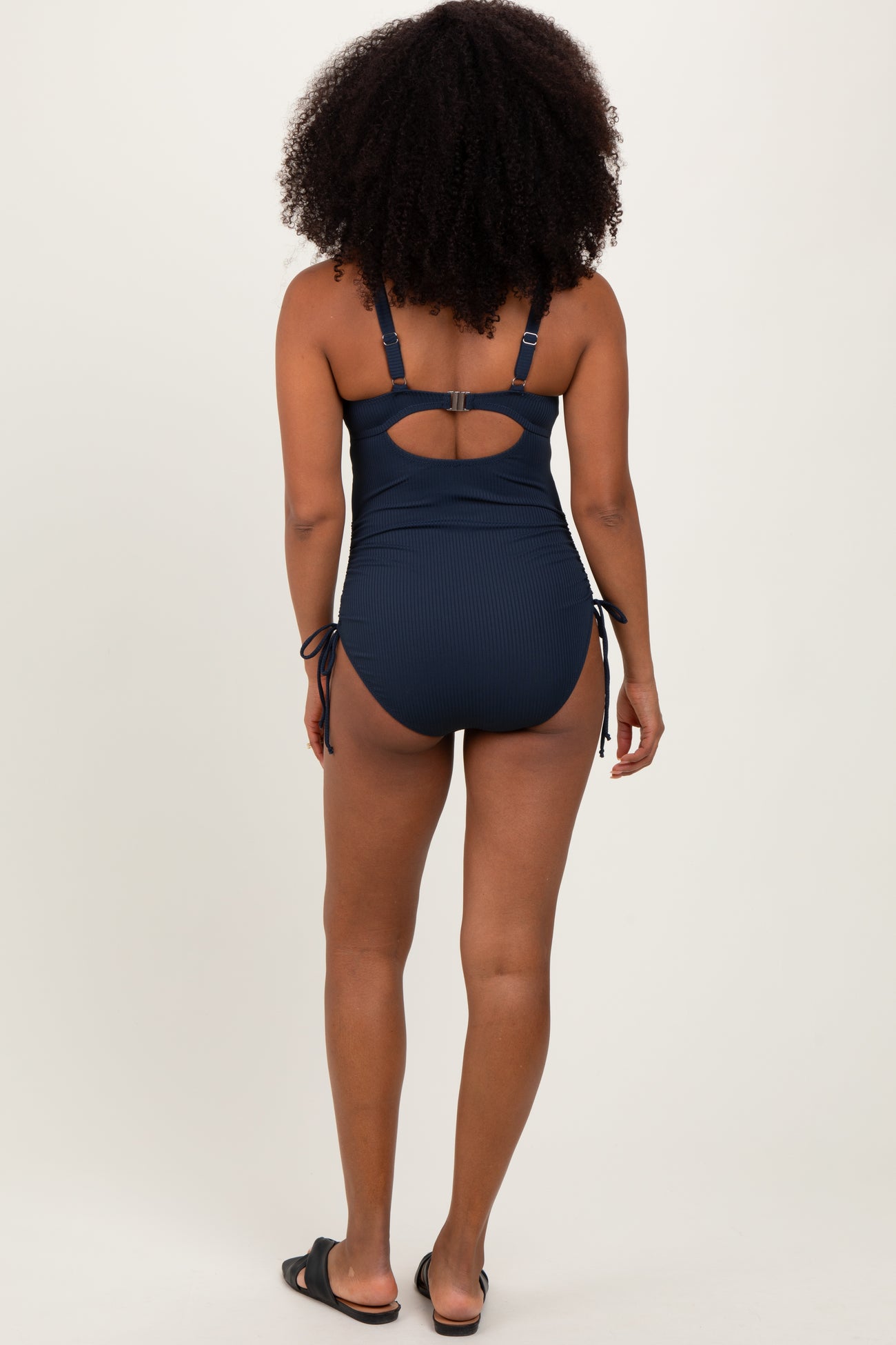 Navy Ribbed O-Ring Cutout Tie Side Swimsuit