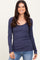 Navy Ribbed Ruched Long Sleeve Top