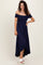 Navy Smocked Off The Shoulder Midi Dress