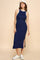 Navy/Soft White High Neck Ribbed Sleeveless Midi Dress