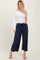 Navy Striped Drawstring Linen Blend Wide Leg Pants