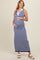 Navy Striped Knit Polo Maternity Fitted Maxi Dress