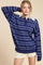 Navy Striped Knit Relaxed Fit Polo Sweater