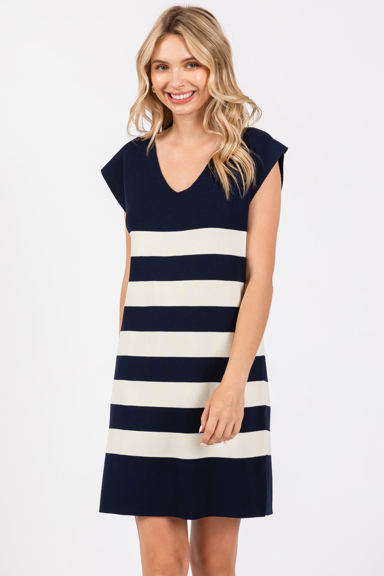 Navy Striped Knit Sleeveless Maternity Dress