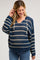 Navy Striped Open Knit Hooded Maternity Long Sleeve Top