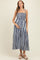Navy Striped Smocked Shoulder Tie Maternity Midi Dress