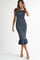 Navy Striped Smocked Shoulder Tie Mid Dress
