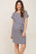 A striped basic dress with a rounded neckline, short sleeves, and tie front detail.