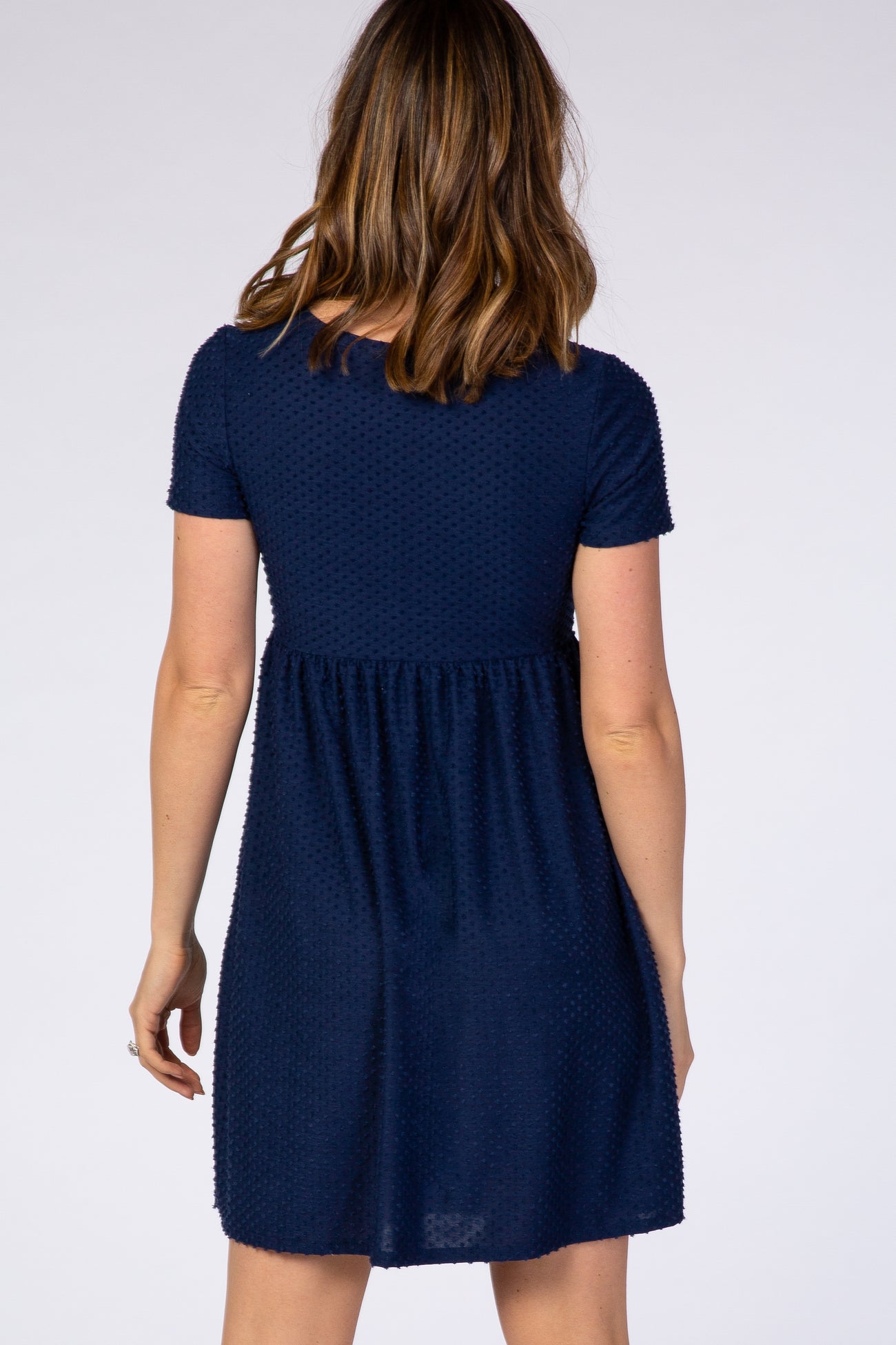 Navy Swiss Dot Short Sleeve Dress