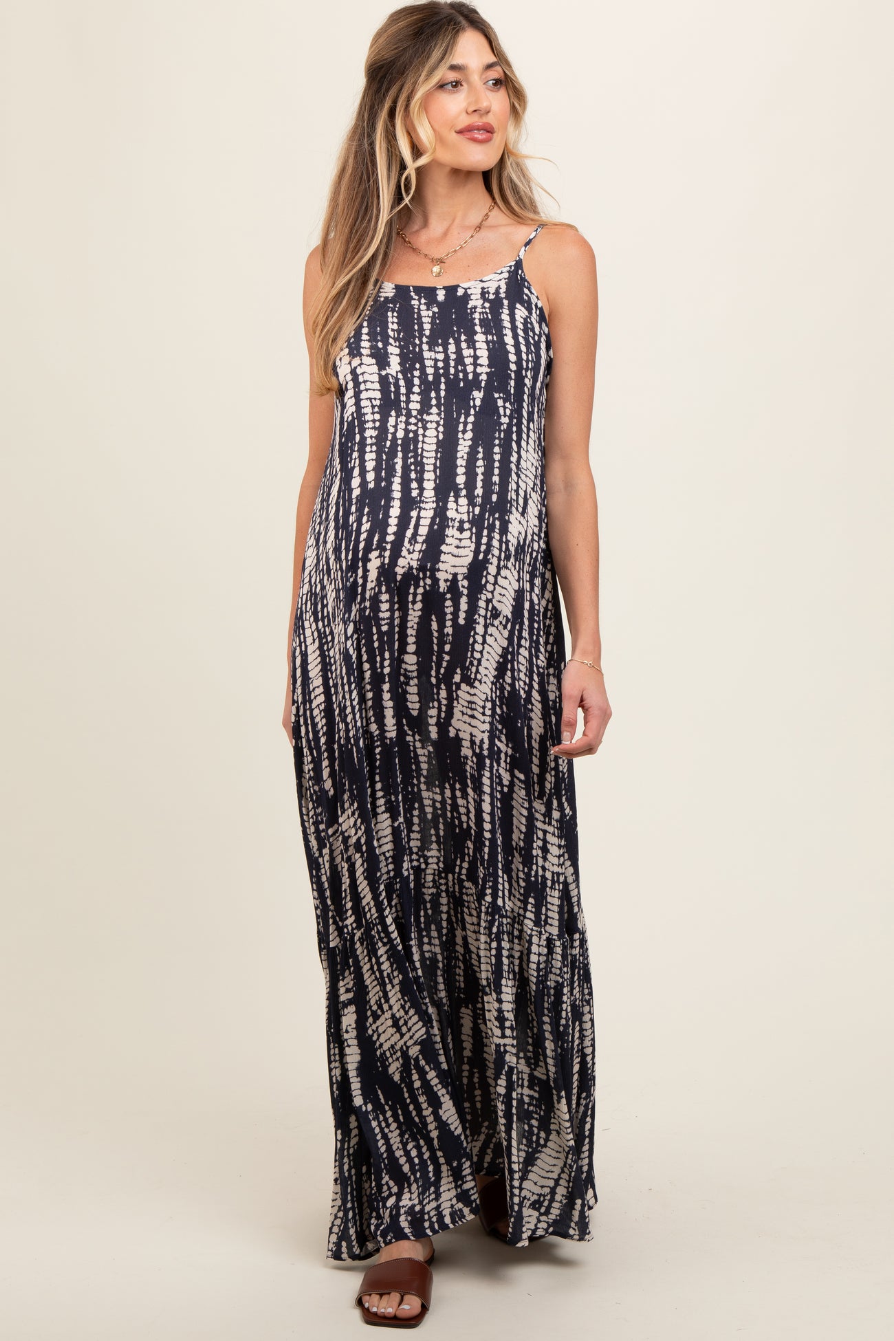 Navy Tie Dye Lightweight Sleeveless Maternity Maxi Dress