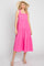 Neon Pink Tiered Crisscross Strap Midi Dress
