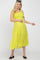 Neon Yellow Smocked Tie Strap Tiered Maternity Midi Dress