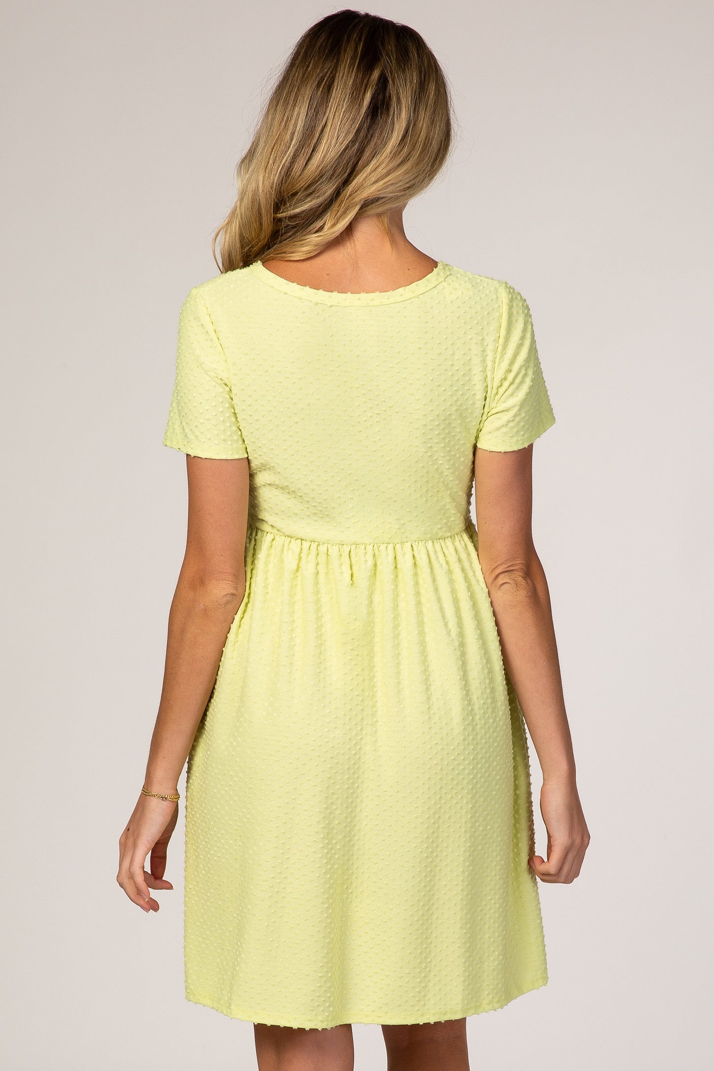 Neon Yellow Swiss Dot Short Sleeve Maternity Dress