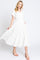 Off White Collar V Neck Cuffed Sleeve Tiered Midi Dress