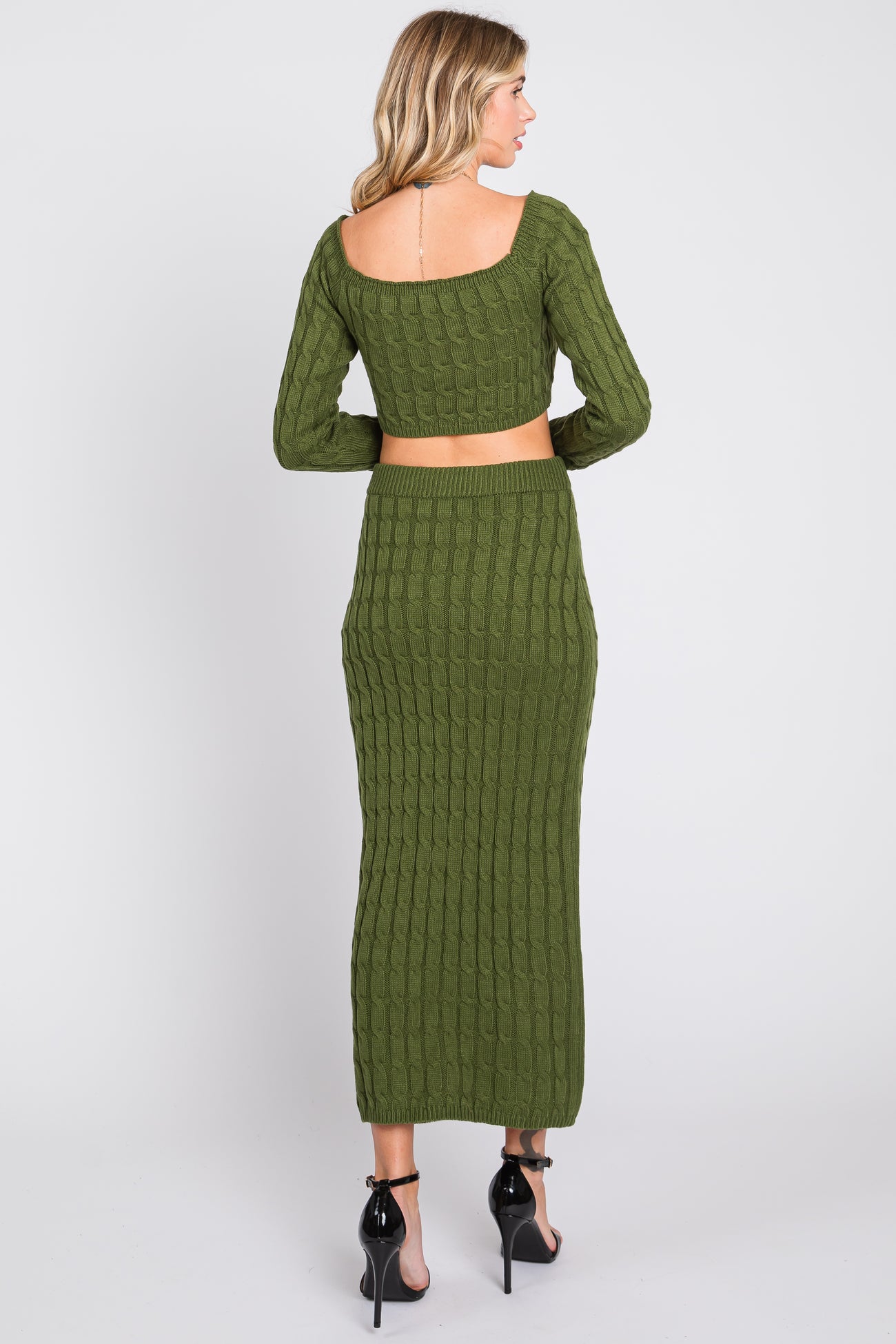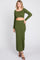 Olive Cable Knit Off Shoulder Midi Skirt Set