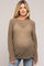 A soft chenille, open knit maternity sweater. Features a ribbed rounded neckline, long sleeves, and a ribbed hem.