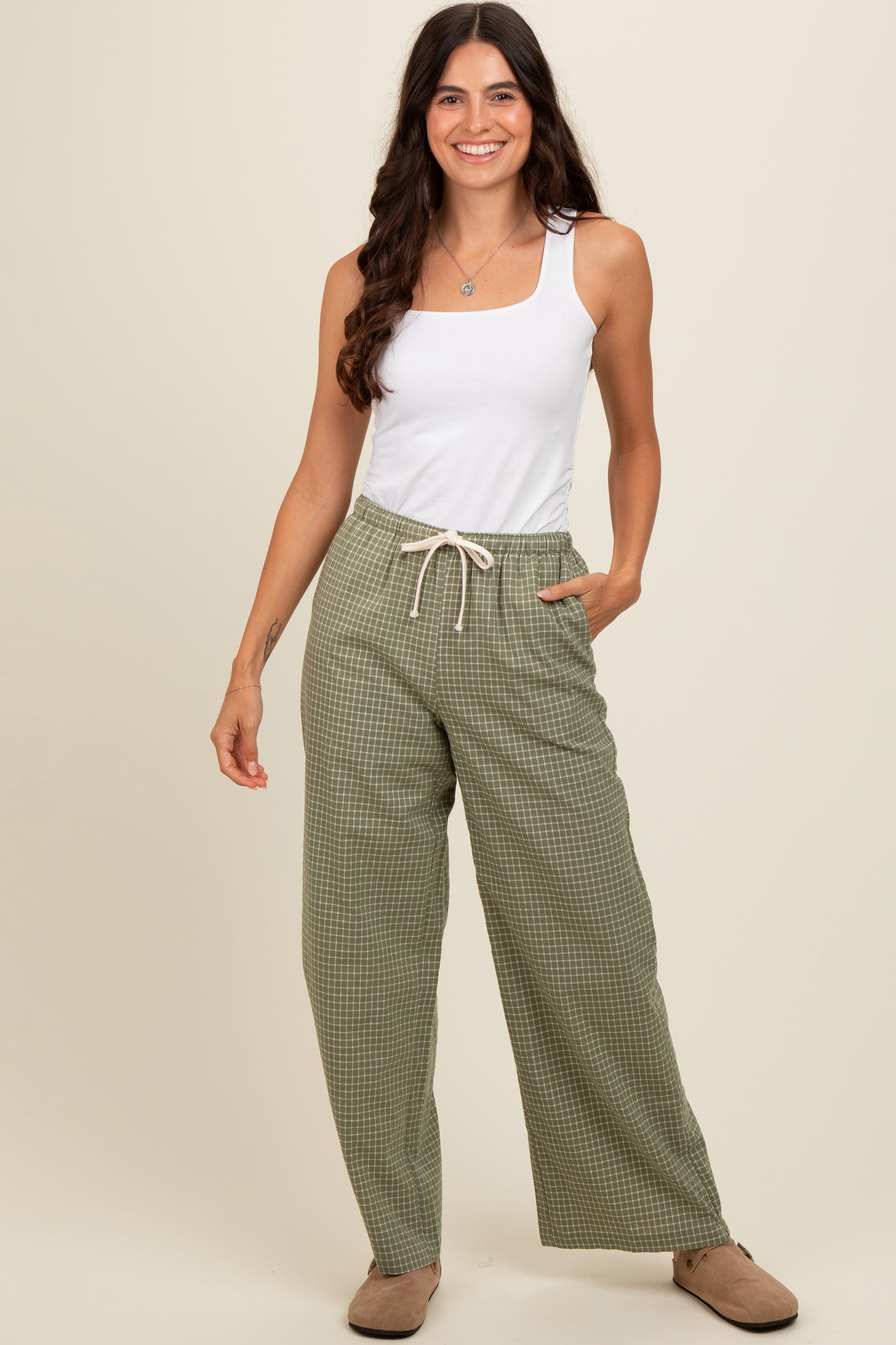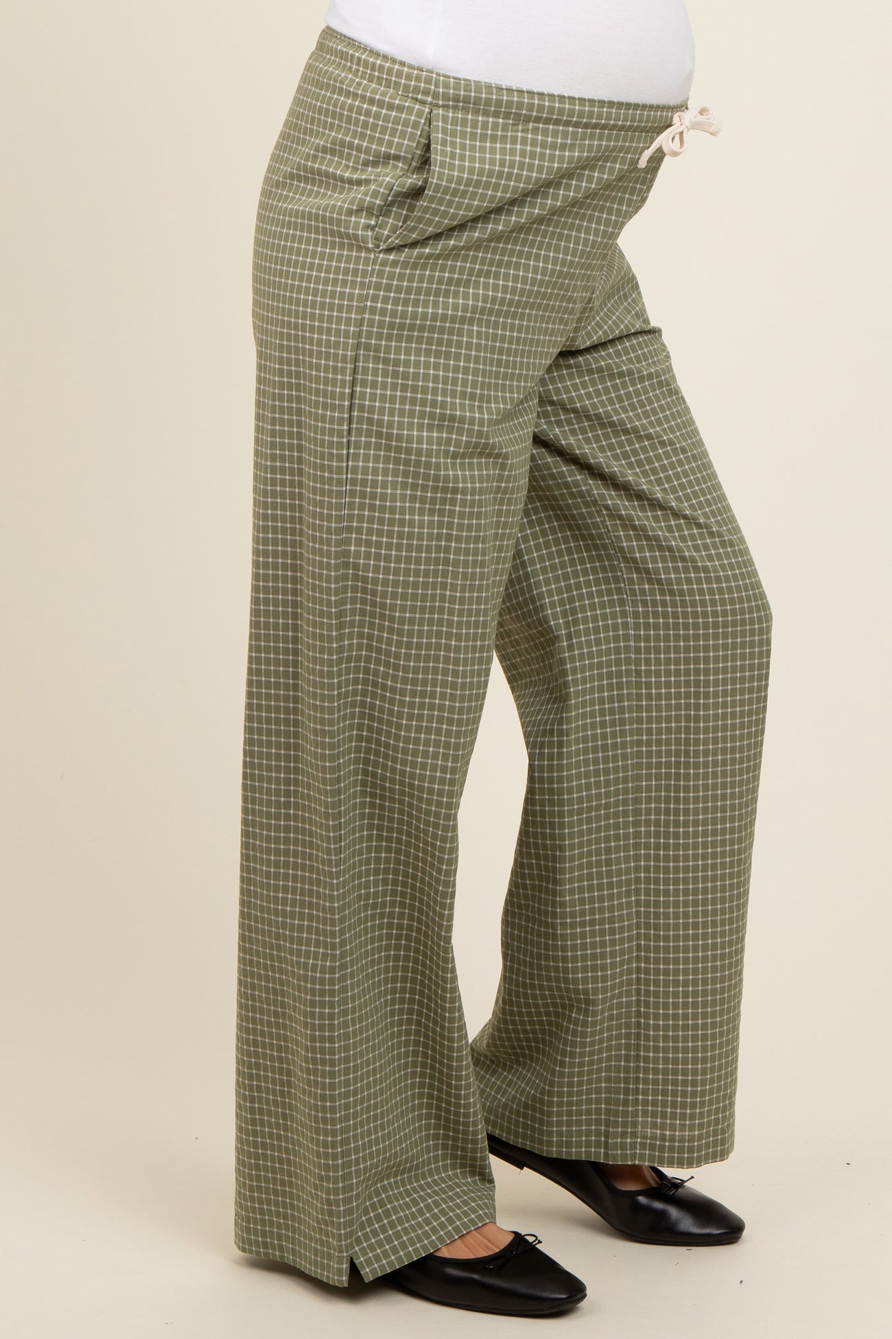 Stay comfortable and stylish with our Olive Drawstring Checker Plaid Maternity Pants. Crafted with soft, breathable fabric, these pants feature a classic olive checkered pattern that adds a touch of timeless charm to your maternity wardrobe. The adjustable drawstring waistband offers a perfect, growing fit throughout your pregnancy, providing gentle support and flexibility. Designed for everyday wear, these pants combine comfort and fashion effortlessly, making them ideal for lounging or casual outings. Pair with your favorite tops and slippers for a cozy, chic look you'll love all season long. Perfect for moms-to-be who want both ease and elegance!