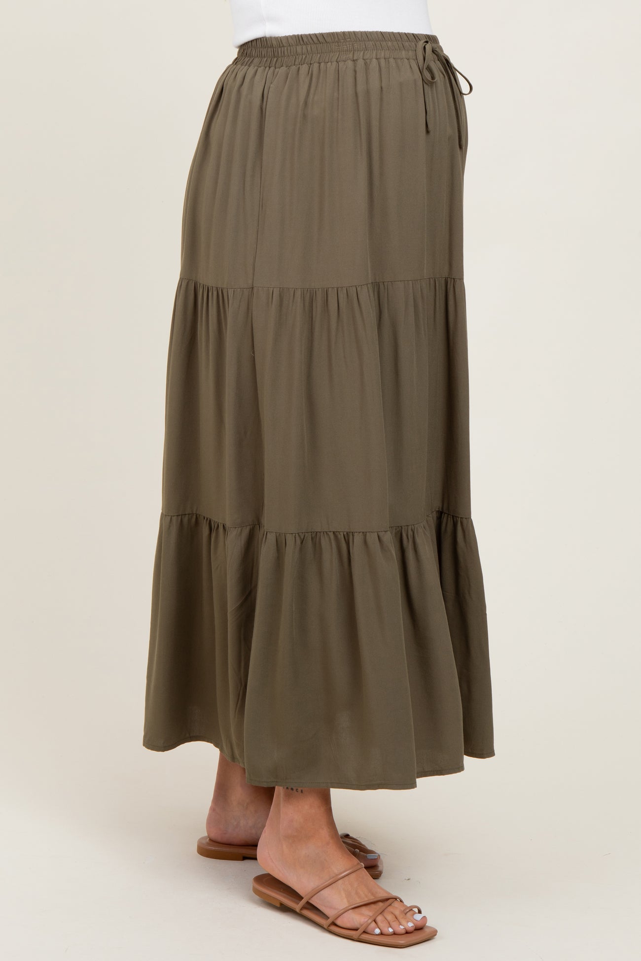 Olive Drawstring Tiered Maternity Maxi Skirt