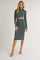A solid knit fitted midi dress with a cutout detail in front.