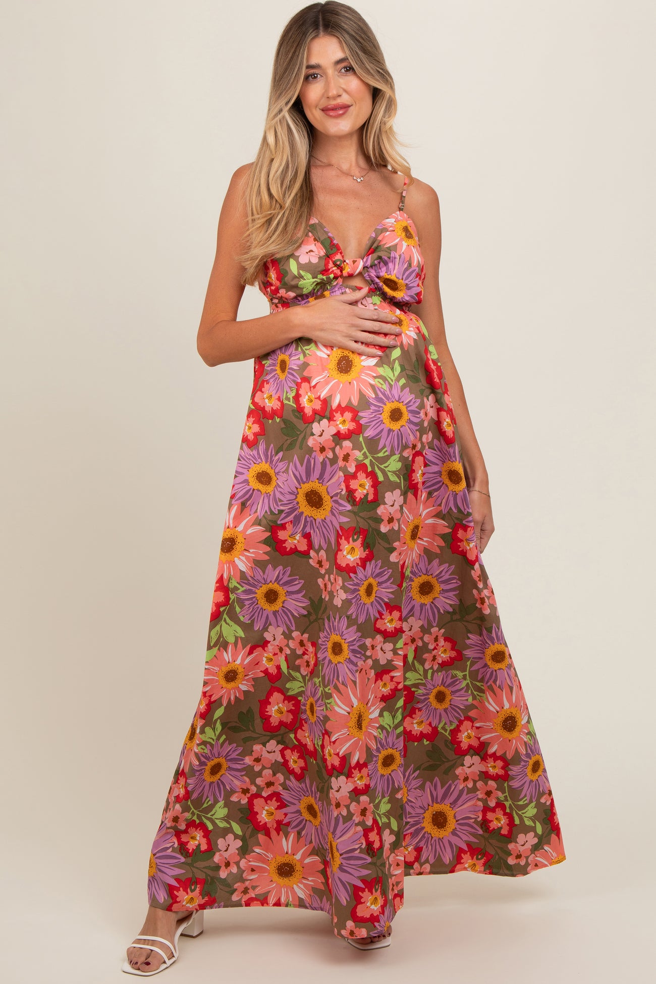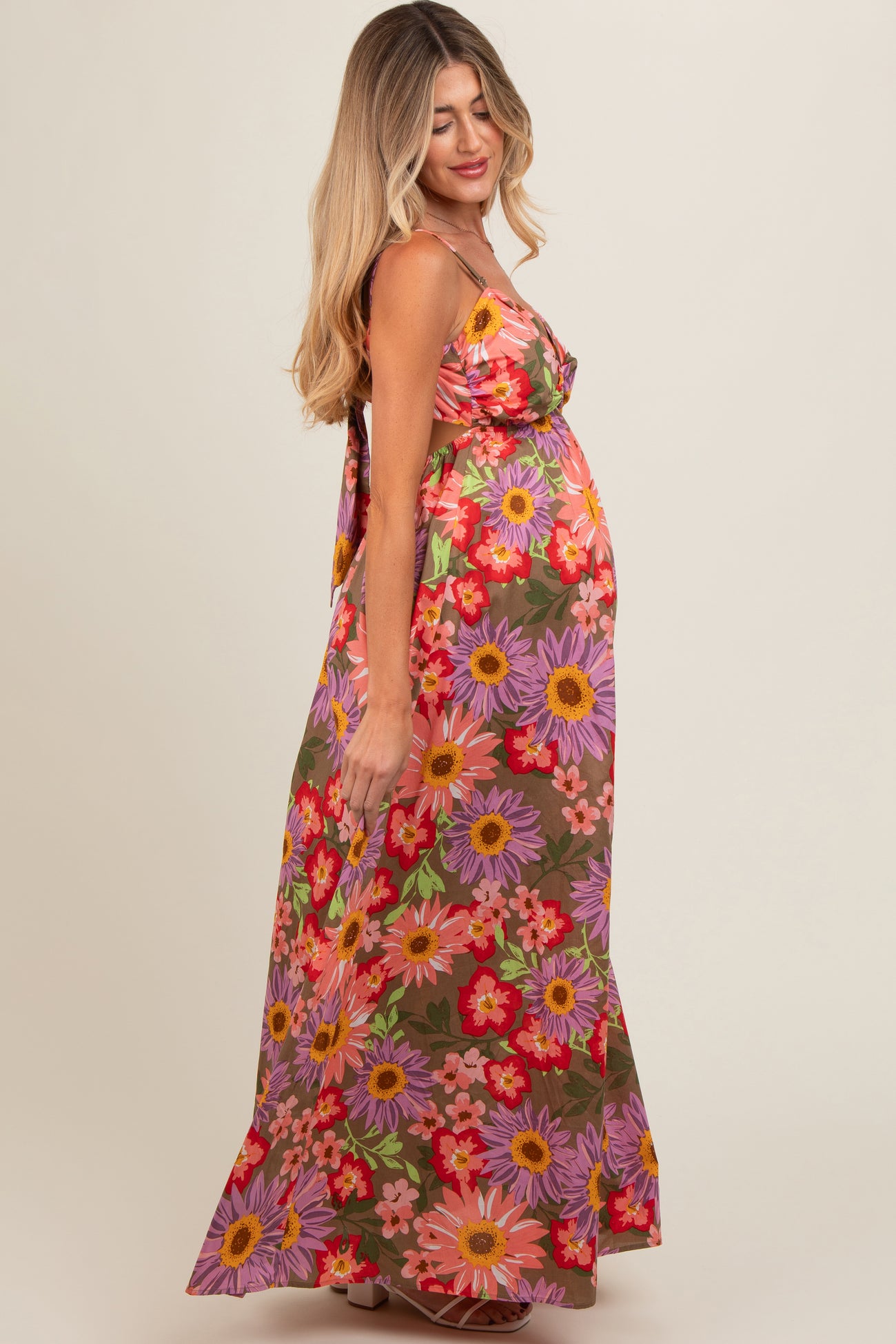 Olive Floral Cutout V-Neck Maternity Maxi Dress