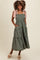 Olive Floral Print Contrast Shoulder Tie Tiered Midi Dress