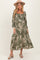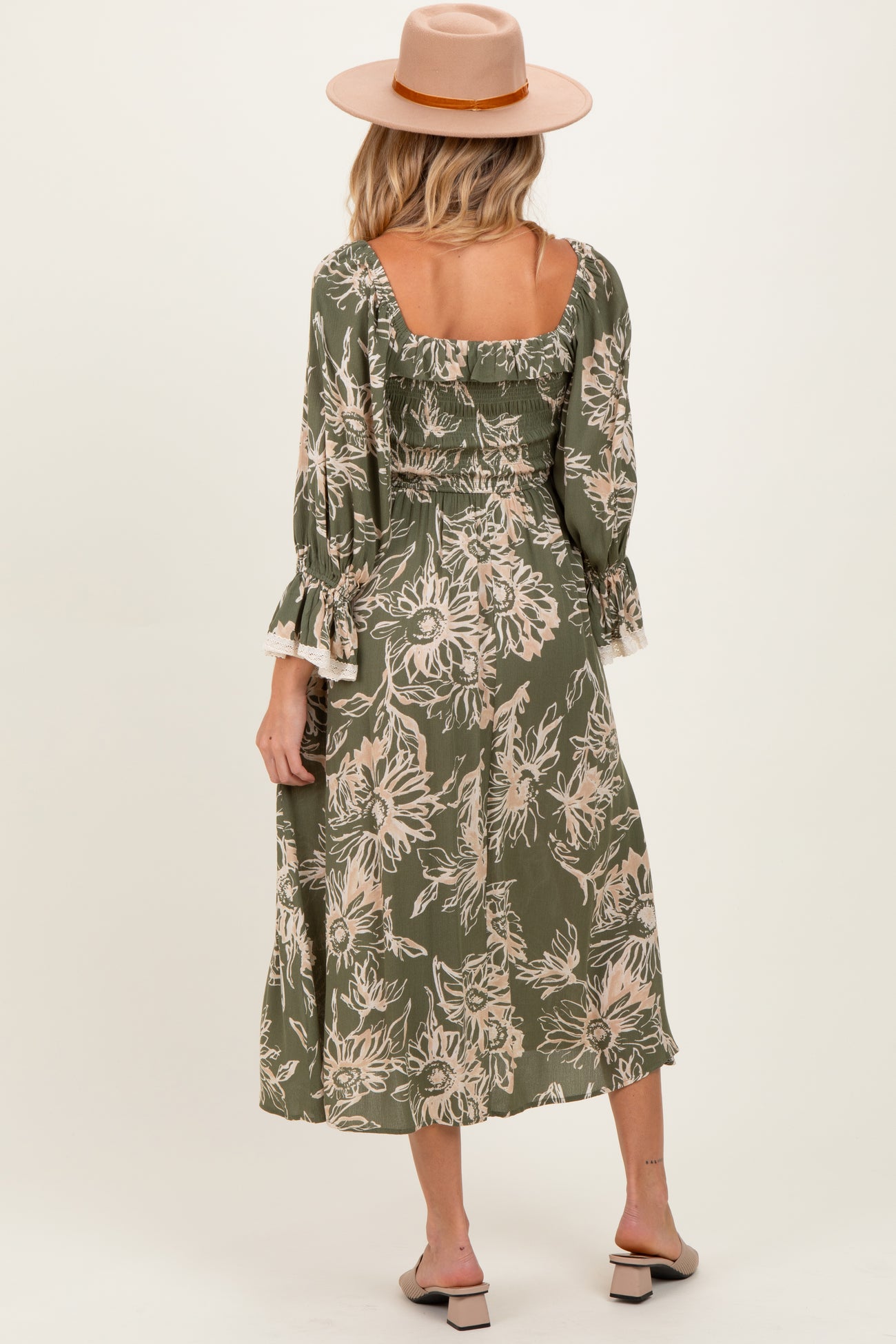 Olive Floral Smocked 3/4 Sleeve Maternity Midi Dress