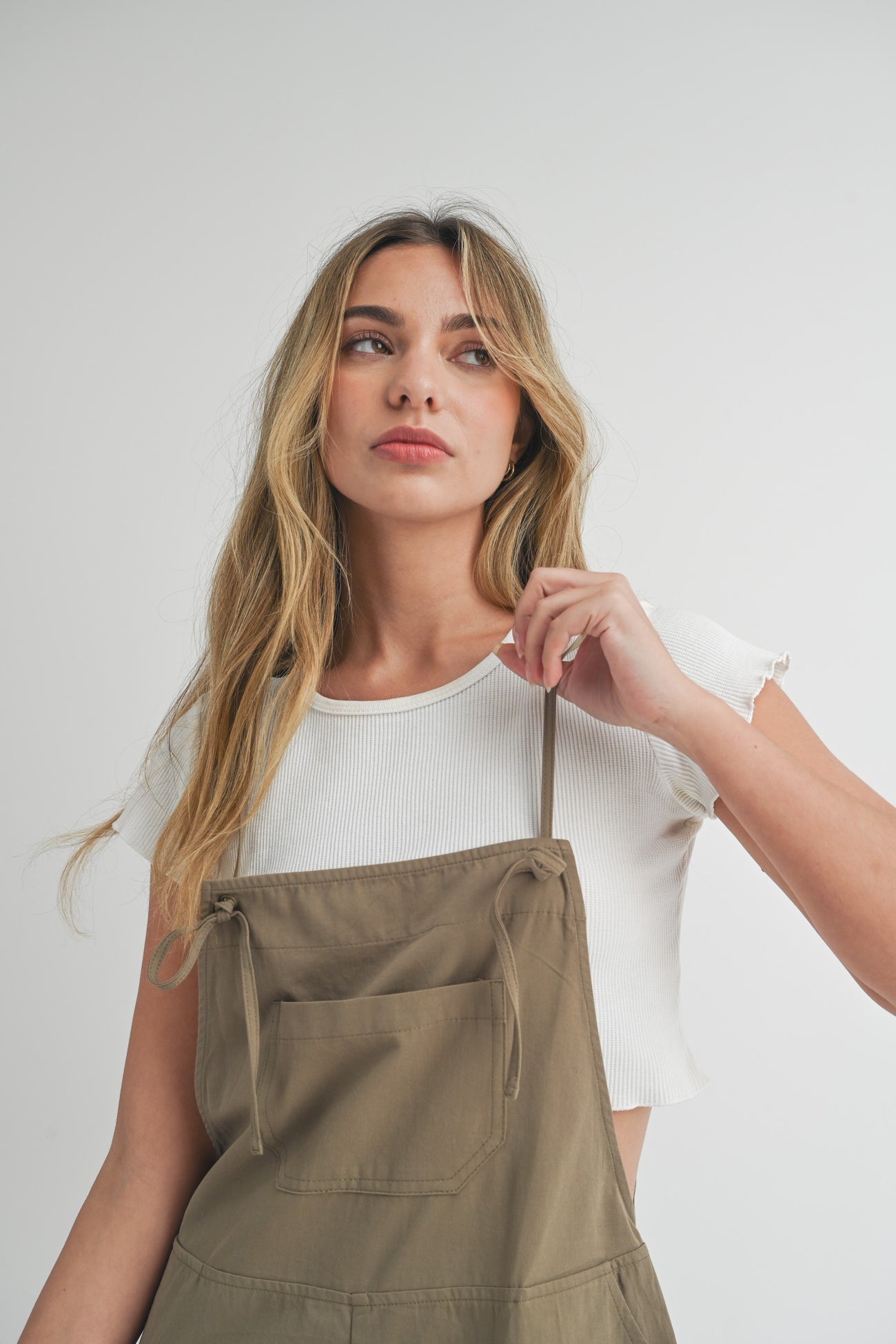 Olive Front Pocket Short Overalls