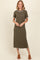 Olive Green Ribbed Embroidered Trim Short Sleeve Midi Dress