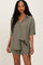 Olive Linen Blend Short Sleeve Shirt Shorts Set