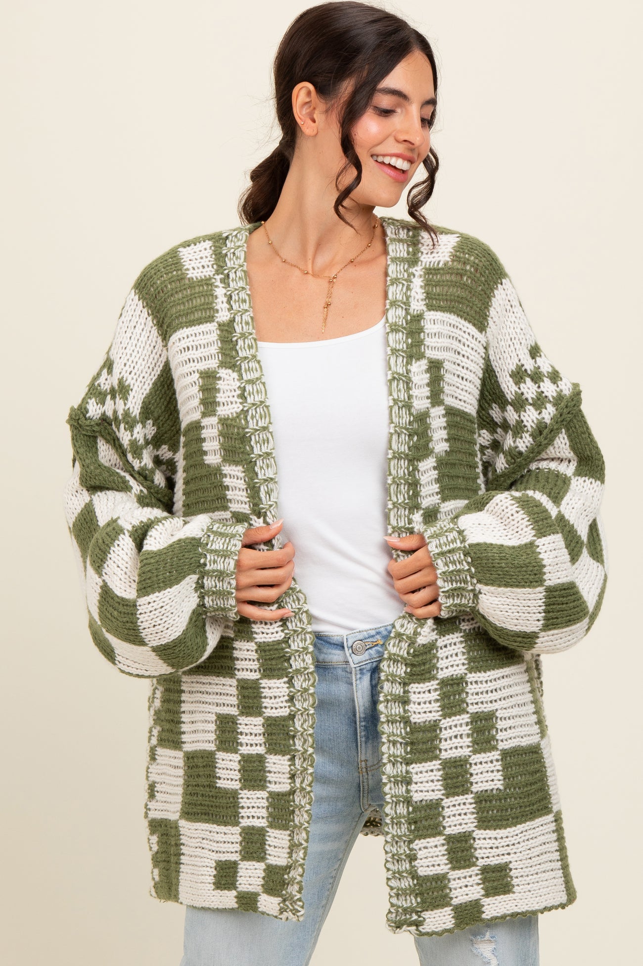 Olive Mixed Check Pattern Chunky Maternity Cardigan