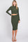 Details A ribbed knit set that includes and mock neck, long sleeve crop top and a bodycon skirt. Content + Care