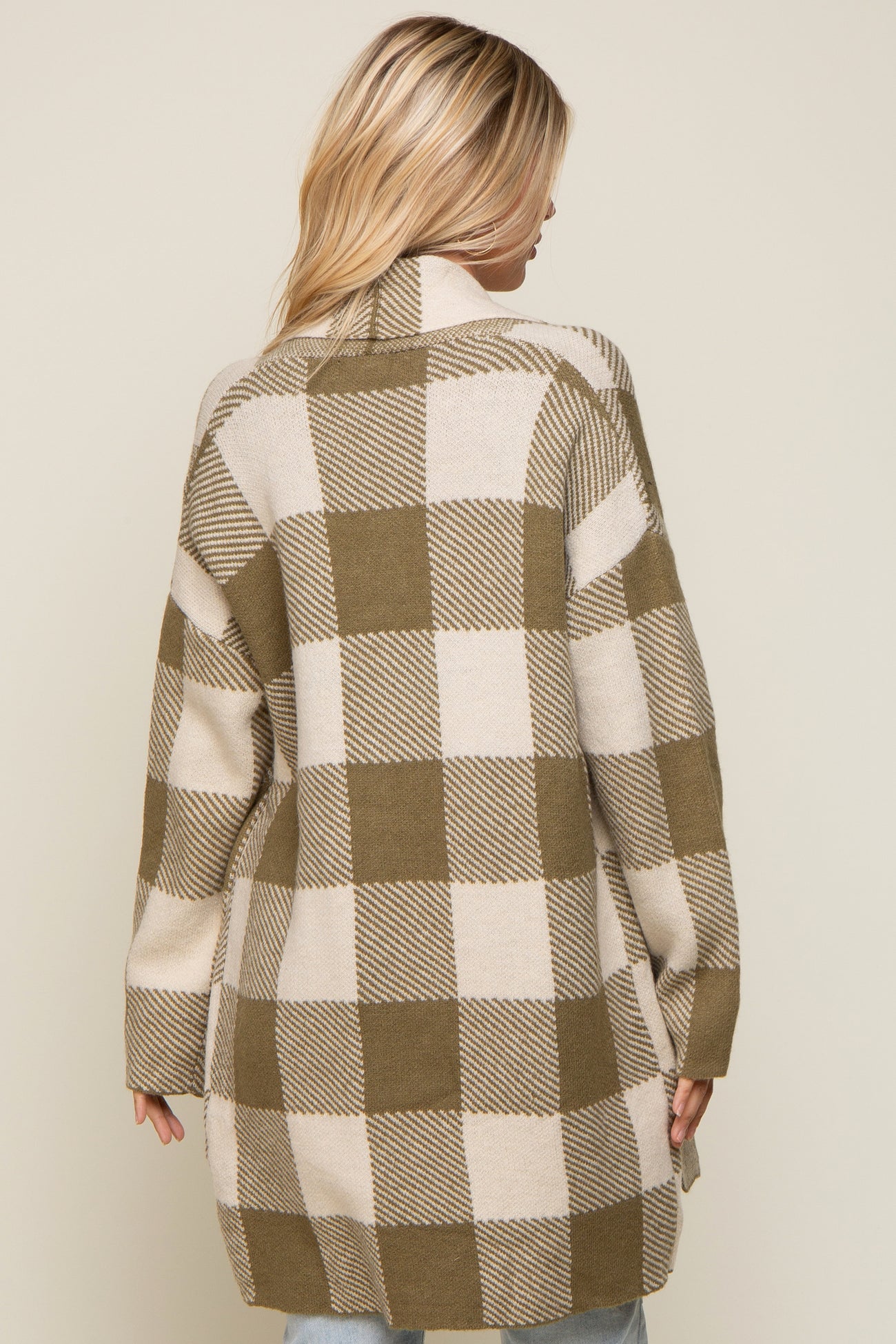 Olive Plaid Shawl Cardigan