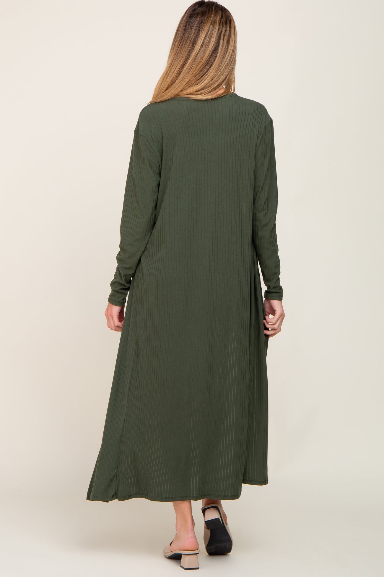 Olive Ribbed Cardigan 2 Piece Maternity Set