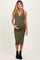 Olive Ribbed Fitted Sleeveless Snap Button Maternity Dress
