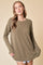 A ribbed knit top featuring a rounded neckline, long sleeves and a round hem with button trim.