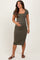 Olive Ribbed Short Sleeve Side Slit Maternity Midi Dress