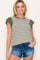 Olive Ribbed Striped Flutter Sleeve Top